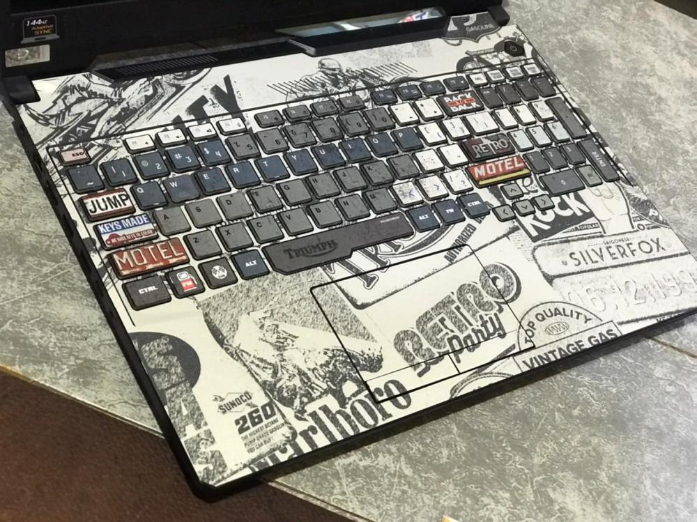 Loại máy phù hợp: Cắt theo kích thước laptop, in hình, chọn phối màu tuỳ ý
